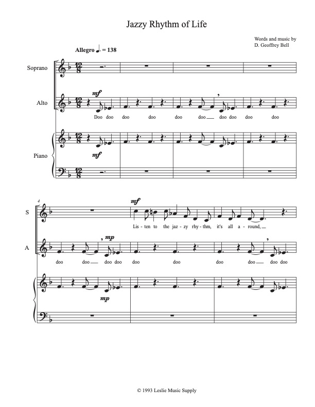 - “Jazzy Rhythm of Life” (SA, SATB)